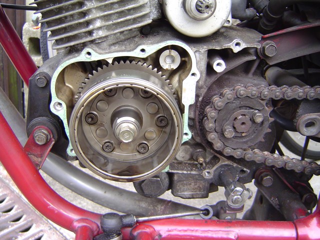 実は、ここからが難航したんですよ・・・ さすがにエンジンの中身は微妙に違っていて、多数ある組み合わせから、可能性のある選択肢を間違えずに、少ない知識の中で出来るかどうかが勝負です! ちなみに、ホンダとDAELIMのドライブスプロケットに互換…