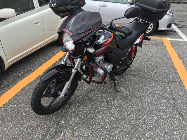 CBF125にエンジンガード付けました。物は、中華製のYBR125のエンジンガードです。エンジンマウトのボルトを少し長めに変えて取り付け完了です。