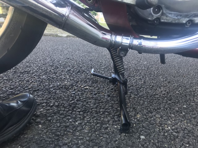 ストックパーツを使って2号機を組み立て始めたのですが、センタースタンドが欠品。 なのでセンタースタンドを作ることにしました。 1から作るのは面倒なので、ヤマハのスクーターギアのセンタースタンドを加工して制作しました。 どこか計算を間違った…