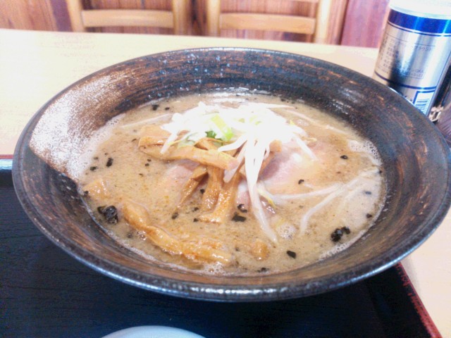 麺家いろはの富山ブラックは東京ラーメンショーでV5達成してるらしいので行ってみました。スープ真っ黒だけど、しょっぱくなくてスープ飲み干せます!白エビ塩ラーメンはエビのだしが出て美味しかった( ´艸`)