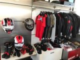 DUCATI、BMWのウェアなどのアパレルや用品を多数揃えており、試着室もあるので試着も可能です。