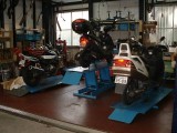 広い整備スペースでバイクも快調に整備します。