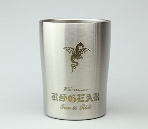ヘアラインフィニッシュのステンレス製で、レーザーでアールズ・ギアのロゴマークなどを刻印しています。