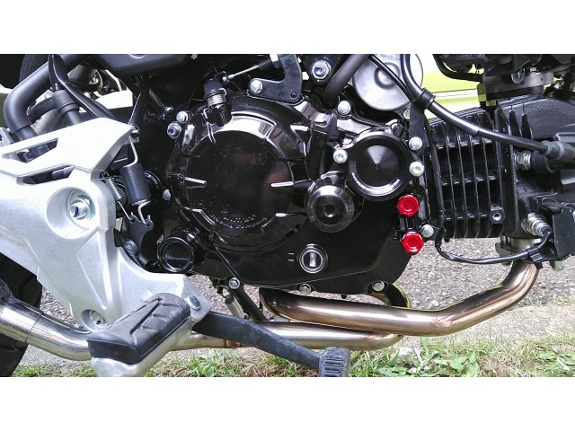 遠心式オイルフィルターを取り外し、交換式オイルフィルターが使えるようになるため交換。 少しのレスポンスアップの代わりに、オイルの総量が減る、トルクが減るデメリットもあるため、ボアアップ等エンジンチューンしてからの方がいいかも。