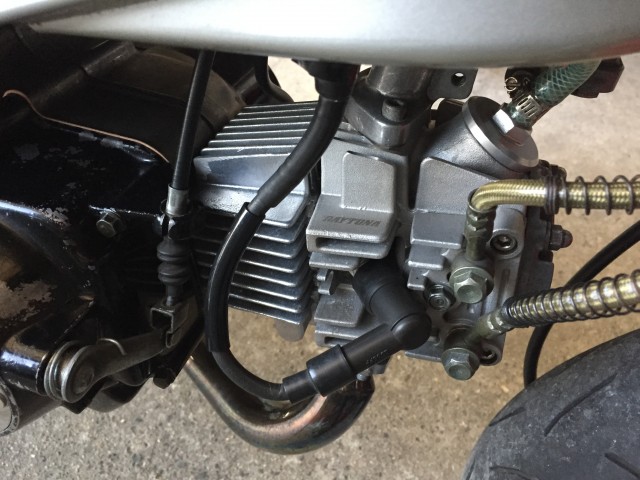 スピードメーターの変更(NSR50→NSR80)60kmから120kmへ 前期3本スポークホイールから後期の6本ホイールへの 変更。コレが…ハマらないのなんのって!悪戦苦闘! 白より黒!