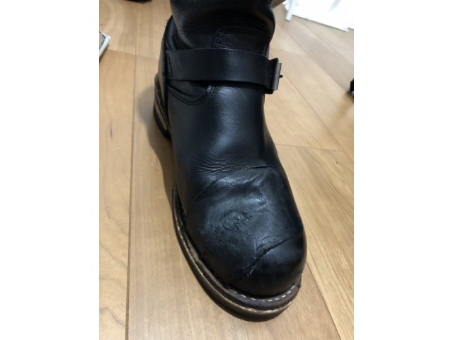 ブーツの手入れのためクリーム買って帰宅。部屋で磨こうとしたところ、、、 おー!シフトペダルガードが擦れて地肌出てるやん。 明日最強ボンドG17を買って、既存ガード部をサンドがけ、アルコールで脱脂後 牛革をGで貼り付けです! 最近飲み屋やってな…