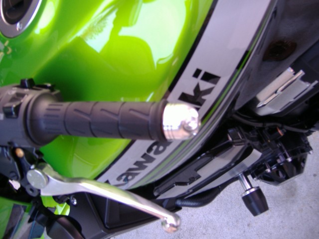 新車購入後2週間目 先週購入していたんですが、純正は固くて外れなかったので 結局、ショップで着けてもらいました(¥900−) 外した純正のグリップエンドは、手にズシリとくる 重さでした・・・ でも・・・ 立ちごけした時のことを思うと不…