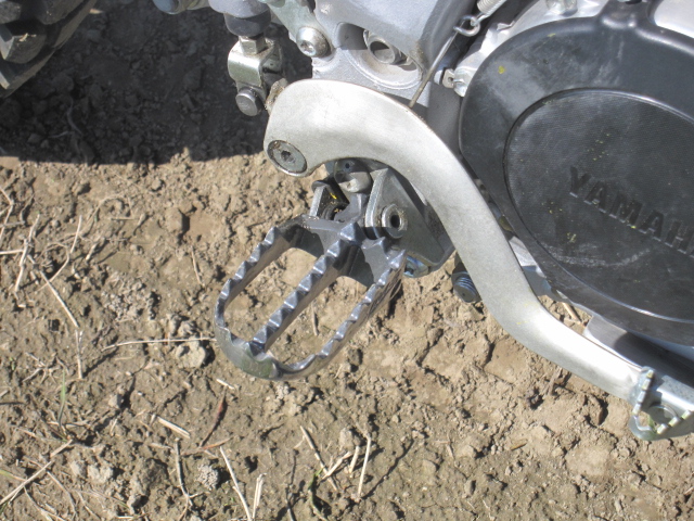 ハイシートと、IMS(ステンレス)ワイドペグを付けました。ハイシートは街乗りは信号待ちで苦労します(身長170cmで短足だから!?) ワイドペグはダート走行のスタンディングが安定、安心感があります。