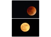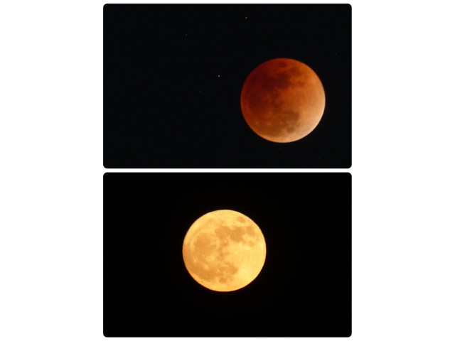 月の撮影してみました。上、昨夜のブラッドムーン(色補正無し)。下、12月3日の満月。意外と色味が違うものですね。