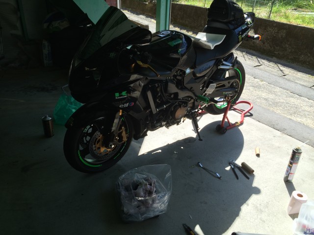 オイル交換完了!今から充電しなかったZXRが治ったので迎えに行ってきまふ!帰ってからはチェーンメンテ!もちろん12Rの!