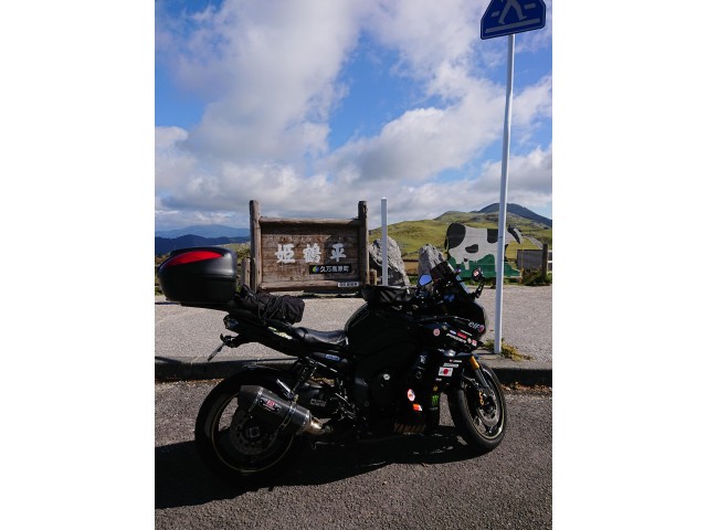 大観峰到着! 宿を出た時は晴れていたのに… 雲が〜(笑)