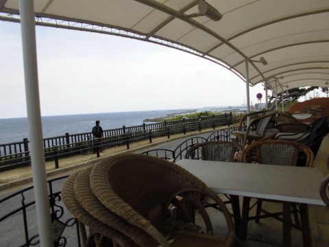 寒いけど、海辺の丘の上のレストランに行きまし…